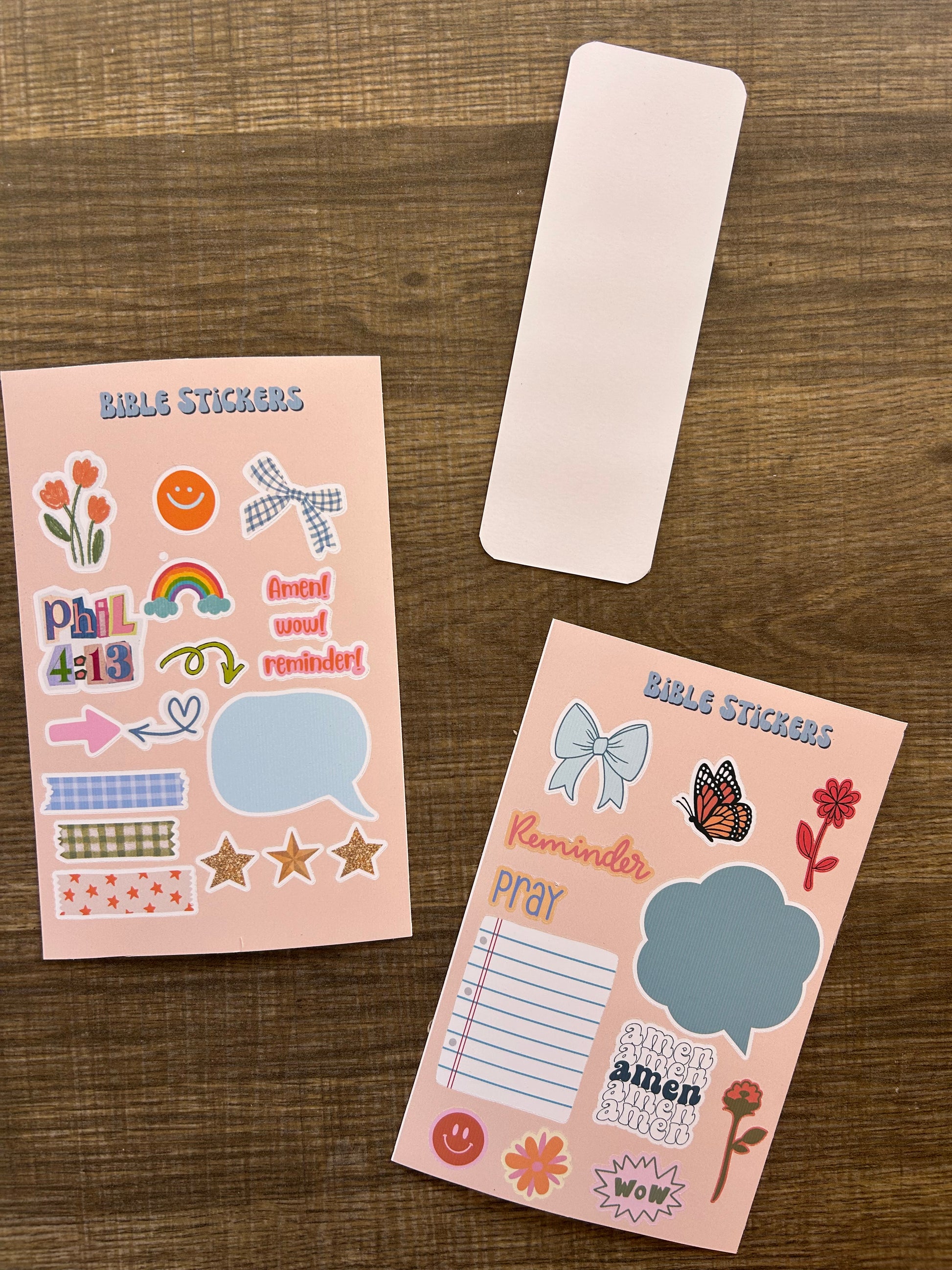 these cutie sticker sheets each come with two different sheets and an extra cutie goodie like a sticker or bookmark :)